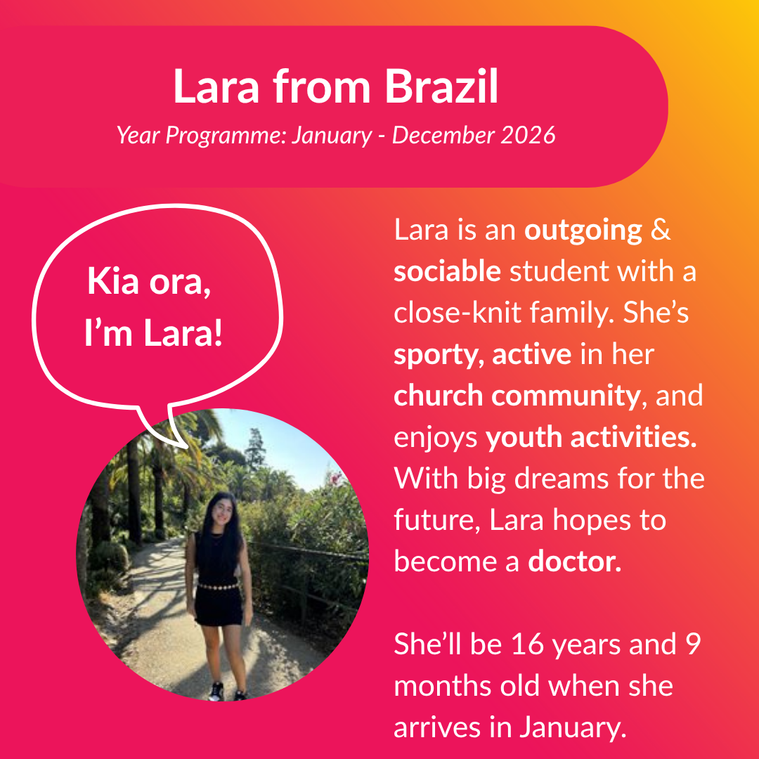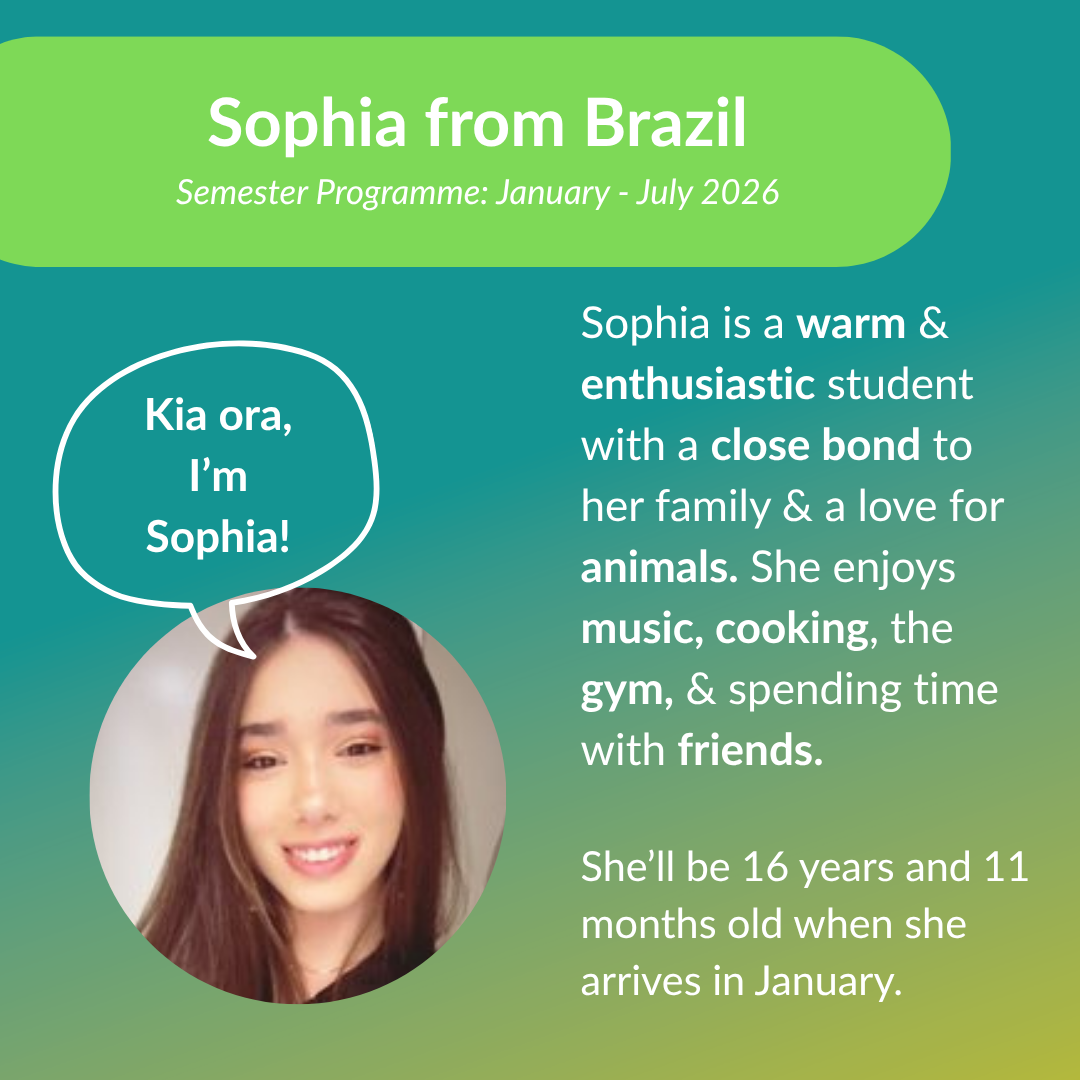 Keen to open your home to an exchange student from Brazil? Sophia and Lara are both 16 and ready to connect with a Kiwi whaanau.